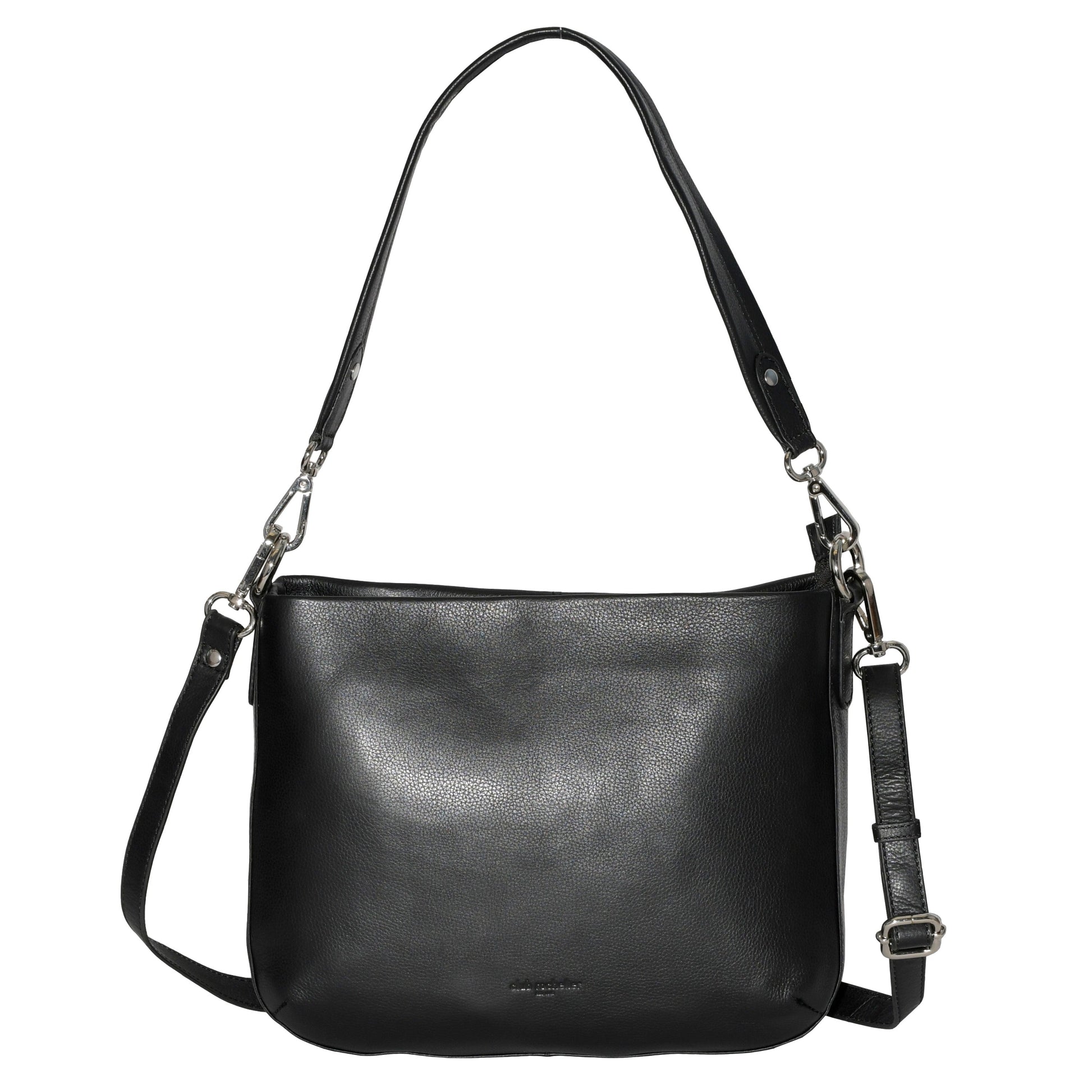 - Bandoulière réglable de 125 cm de longueur avec curseur en métal pour s'adapter à la sangle.